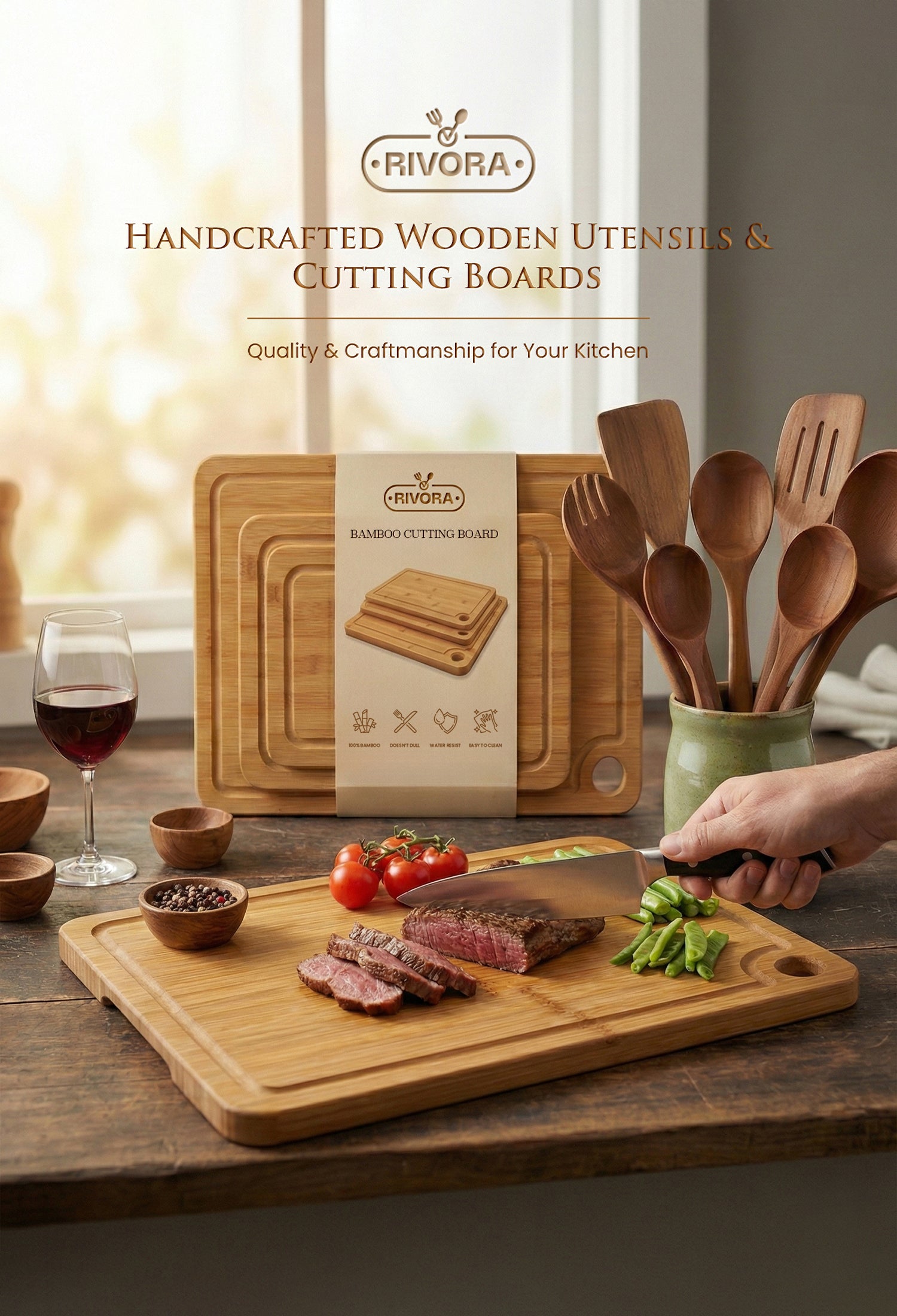 Rivora Premium Bamboo Cutting Board Set with Stand
